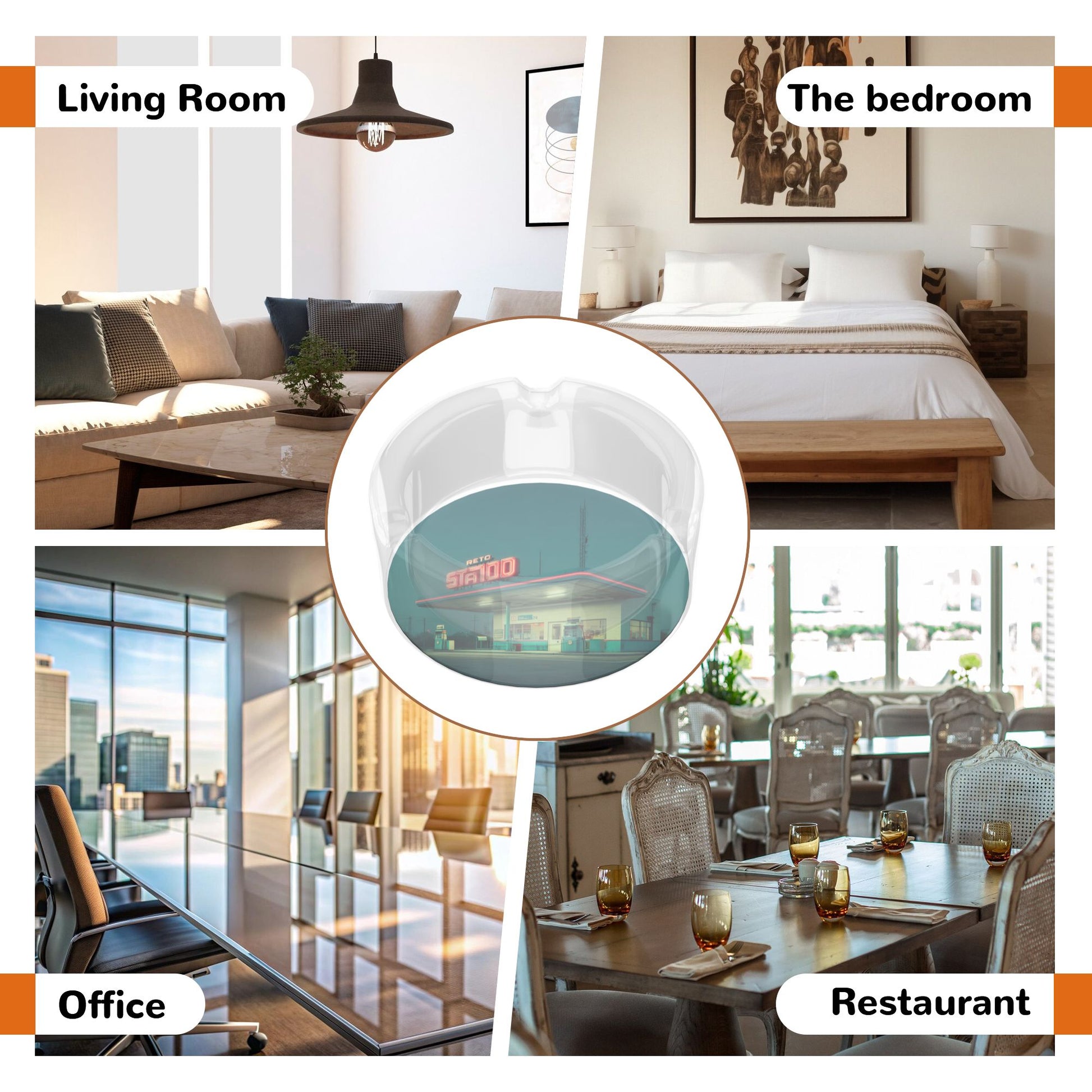 Crafted from high - quality transparent glass, it features excellent clarity. The glass walls are evenly thick, sturdy, heat - resistant, and impact - resistant, not easy to break during daily use, ensuring long - term companionship. The pattern at the bottom is a highlight, presenting a retro - styled gas station scene. The prominent “RETRO STATION” sign, along with the gas station building, fuel dispensers, and surrounding environment, jointly creates a nostalgic picture. It seems to instantly transport people back to the road trip days of the past, transforming a practical ashtray into a miniature retro art landscape. Every glance at it is like embarking on a nostalgic journey.