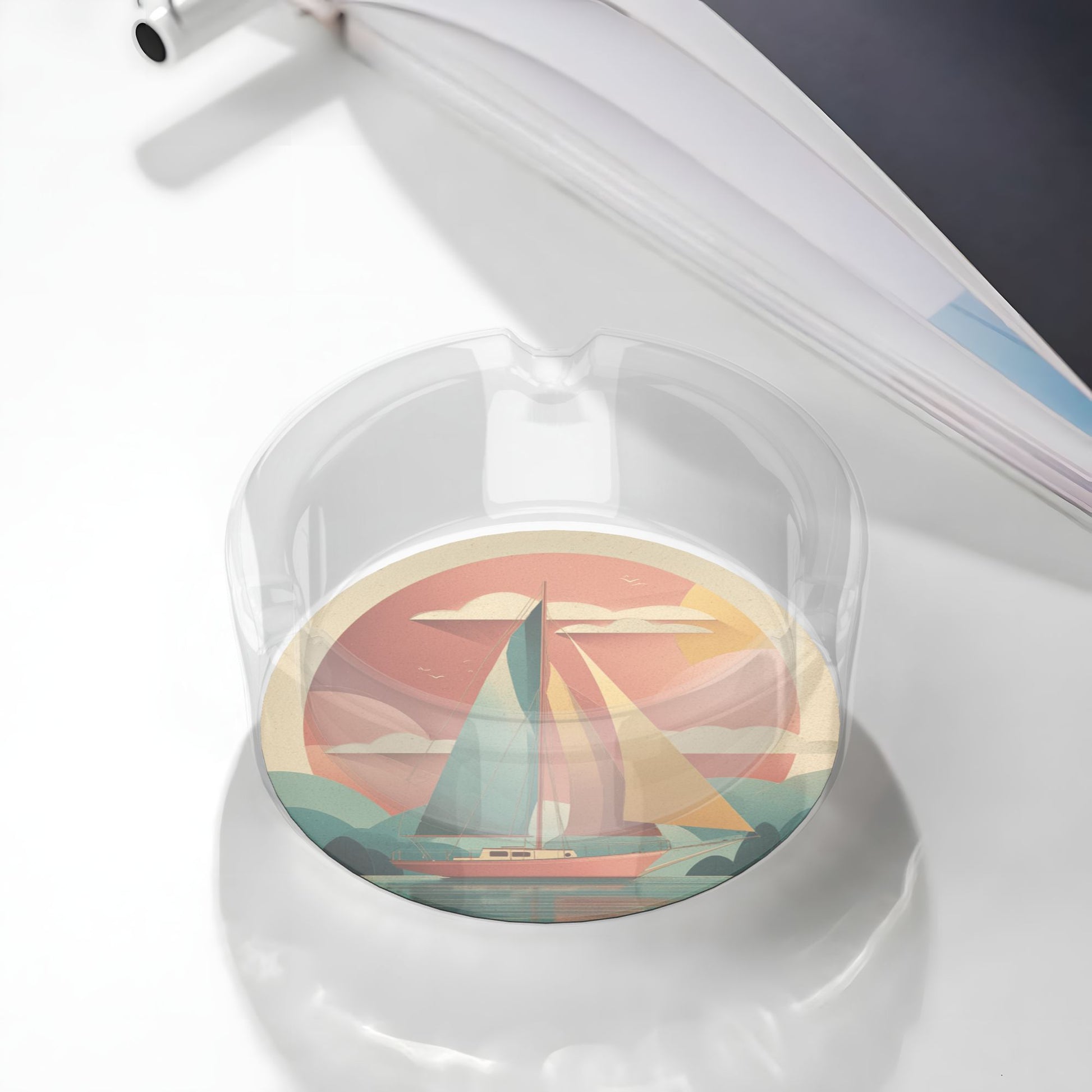 Round Glass Ashtray with Sailboat Pattern - 8.5cm Diameter Creative and Practical Smoking Companion