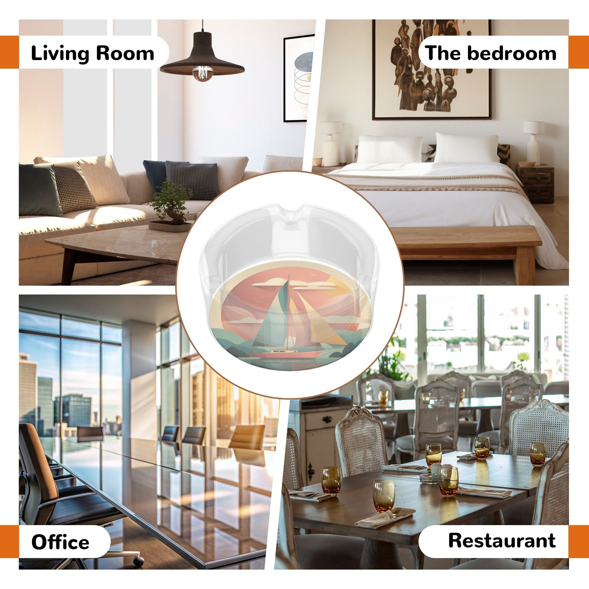 In terms of decoration, it is an excellent adornment for both home and office environments. Placed on the coffee table in the living room, it can instantly enhance the artistic atmosphere of the entire space, adding a special charm when you gather with friends and smoke. Placed on the desktop in the office, it brings a touch of relaxation and comfort to your busy working hours. Whether for personal use or as a gift for smoking friends and relatives, this round glass ashtray with a sailboat pattern is an impeccable choice, perfectly integrating practical functions with artistic beauty.