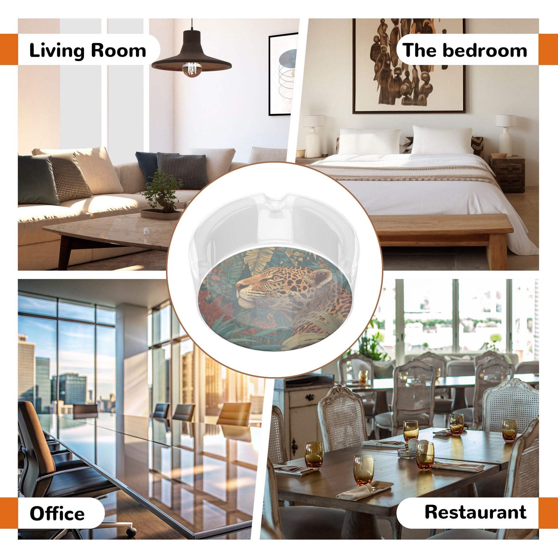 Made from high - quality transparent glass, it features excellent clarity. The glass walls are evenly thick, sturdy, heat - resistant, and impact - resistant, not easy to break during daily use, ensuring long - term companionship. The pattern at the bottom is the core highlight, combining tropical jungle and leopard elements: Among the dense green plants and colorful leaves, the leopard’s spots are distinct, and its expression is majestic yet mysterious, vividly recreating the wild atmosphere of the jungle. It transforms a practical ashtray into a miniature tropical ecological art landscape, making each use feel like embarking on a jungle exploration journey.